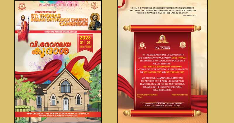 പ്രശസ്ത വചന പ്രഘോഷകനും തപസ് ധ്യാനഗുരുവും കോട്ടയം പാമ്പാടി ഗുഡ് ന്യൂസ് ധ്യാനകേന്ദ്രം ഡയറക്ടറുമായ റവ.ജോസഫ് കണ്ടത്തിപ്പറമ്പില് നയിക്കുന്ന തപസ് ധ്യാനം ഏപ്രില് 6,7,8 (വെള്ളി , ശനി, ഞായര്) തീയതികളില് കേംബ്രിഡ്ജില് നടക്കും. താമസിച്ചുള്ള ഈ ധ്യാനത്തിലേക്ക് സീറ്റുകള് മുന്കൂട്ടി ബുക്ക് ചെയ്യേണ്ടതാണ്. ഏറെ അനുഗ്രഹദായകമായ ഈ ധ്യാനത്തിലേക്കു സംഘാടകര് ഏവരെയും സ്വാഗതം ചെയ്യുന്നു.