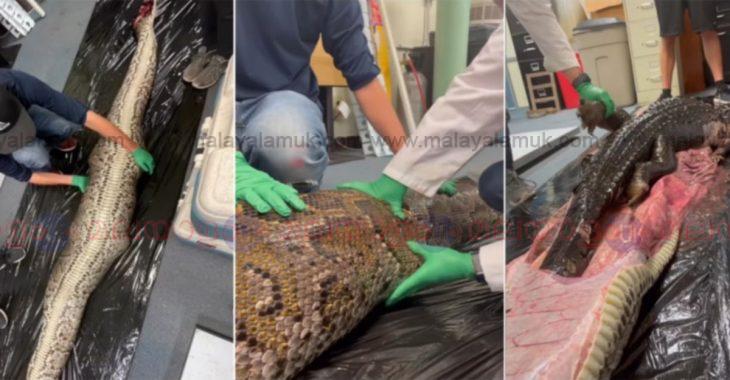 കൂറ്റന് മുതലയെ ഒന്നോടെ വിഴുങ്ങി പെരുമ്പാമ്പിന്റെ വയറിനുളളില് നിന്ന് അതിനെ പുറത്തെടുക്കുന്ന ദൃശ്യമാണ് ഇപ്പോള് സോഷ്യല് മീഡിയയില് വൈറലാകുന്നത്. പാമ്പിന്റെ വയര് കീറിയാണ് വിദഗ്ധര് മുതലയെ പുറത്തെടുത്തത്. ലോകത്തെ ഏറ്റവും വലിയ പാമ്പ് വര്ഗങ്ങളില് ഒന്നായ ബര്മീസ് പെരുമ്പാമ്പാണ് മുതലയെ ഒന്നോടെ വിഴുങ്ങിയത്. ദി റിയല് ടാര്സന് എന്ന ഇന്സ്റ്റഗ്രാം പേജിലാണ് ഈ ദൃശ്യം പങ്കുവെച്ചിരിക്കുന്നത്. നിരവധിയാളുകള് ഇപ്പോള്ത്തന്നെ ഈ ദൃശ്യം കണ്ടുകഴിഞ്ഞു.