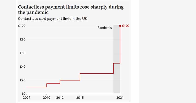 യുകെയിൽ നിലവിൽ കോൺടാക്റ്റ്‌ലസ് കാർഡ് പേയ്‌മെന്റുകൾക്ക് ബാധകമായ £100 എന്ന പരമാവധി പരിധി നീക്കാൻ തീരുമാനമായതായി ഫിനാൻഷ്യൽ കണ്ടക്റ്റ് അതോറിറ്റി (എഫ്‌സിഎ) അറിയിച്ചു. മാർച്ച് മുതൽ ബാങ്കുകൾക്കും കാർഡ് സേവനദാതാക്കൾക്കും പിൻ നമ്പർ നൽകാതെ ഒരൊറ്റ ഇടപാടിൽ കൂടുതൽ തുക അടയ്ക്കാൻ അനുമതി നൽകാം. ആവശ്യാനുസരണം പരമാവധി തുക നിശ്ചയിക്കാനോ, ചില സാഹചര്യങ്ങളിൽ പരിധിയില്ലാത്ത കോൺടാക്റ്റ്‌ലസ് പേയ്‌മെന്റ് അനുവദിക്കാനോ ബാങ്കുകൾക്ക് അധികാരം ലഭിക്കും. ഇതോടെ ദിനംപ്രതി വലിയ തുക ചെലവാക്കുന്ന ഉപഭോക്താക്കൾക്ക് ഇടപാടുകൾ കൂടുതൽ എളുപ്പമാകും.