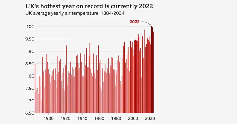 വേനൽക്കാലത്ത് യുകെയുടെ പല ഭാഗങ്ങളിലും അസാധാരണമായ ചൂടാണ് അനുഭവപ്പെട്ടത്. നോർത്ത് സമർസെറ്റിൽ തടാകങ്ങളുടെ അടിത്തറ പൂർണമായി വറ്റി വരണ്ട് വിള്ളലുകൾ രൂപപ്പെട്ടതും, കൃഷിയെയും ജലലഭ്യതയെയും വരൾച്ച ബാധിച്ചതും നേരത്തെ വാർത്തകളിൽ ഇടം പിടിച്ചിരുന്നു. കെന്റിലെ ഫോക്‌സ്റ്റൺ ഉൾപ്പെടെയുള്ള തീരദേശ പ്രദേശങ്ങളിൽ ചൂട് ആസ്വദിക്കാൻ ജനങ്ങൾ കടൽത്തീരങ്ങളിൽ കൂട്ടമായി എത്തിയതും ഈ വർഷത്തെ കാലാവസ്ഥാ വ്യത്യാസത്തിന്റെ മറ്റൊരു ചിത്രം തന്നെയാണ്. എന്നിരുന്നാലും, ക്രിസ്തുമസ് കാലത്ത് പ്രതീക്ഷിക്കുന്ന തണുത്ത കാലാവസ്ഥയും താപനിലയിലെ ഇടിവും കാരണം അന്തിമ കണക്കുകൾ ഇതുവരെ സ്ഥിരീകരിച്ചിട്ടില്ലെന്നും, വർഷാവസാന കണക്കുകൾ ലഭിച്ച ശേഷമേ ഔദ്യോഗിക പ്രഖ്യാപനം ഉണ്ടാകൂവെന്നും മെറ്റ് ഓഫീസ് അറിയിച്ചു.