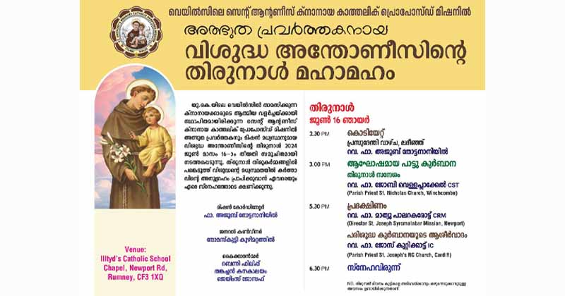 മാഞ്ചസ്റ്റര്: ലോക പ്രശസ്ത വചന പ്രഘോഷകനും സെഹിയോന് മിനിസ്ട്രീസ് സ്ഥാപകനുമായ റവ. ഫാ.സേവ്യര് ഖാന് വട്ടായില് നയിക്കുന്ന ഗ്രേറ്റ് ബ്രിട്ടണ് സീറോ മലബാര് രൂപത രണ്ടാമത് ബൈബിള് കണ്വെന്ഷന് മാഞ്ചസ്റ്റര് റീജിയന് കേന്ദ്രീകരിച്ച് നവംബര് 3ന് നടക്കും. ബിഷപ്പ് മാര്. ജോസഫ് സ്രാമ്പിക്കല് തിരുക്കര്മ്മങ്ങള്ക്ക് നേതൃത്വം നല്കും.
