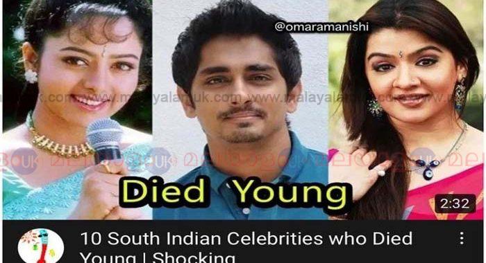 ”ചെറു പ്രായത്തില് തന്നെ മരണപ്പെട്ട 10 തെന്നിന്ത്യന് താരങ്ങള്” എന്ന് തലക്കെട്ടോടെ എത്തിയ വീഡിയോയിലാണ് താരത്തിന്റെ ചിത്രം ഉപയോഗിച്ചിരിക്കുന്നത്. ഈ വീഡിയോക്ക് എതിരെ താന് യൂട്യൂബിന് റിപ്പോര്ട്ട് ചെയ്തപ്പോള് കിട്ടിയ മറുപടി കണ്ട് ആശ്ചര്യപ്പെട്ടു എന്ന് താരം പറയുന്നു.