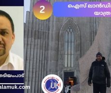 ടോം ജോസ് തടിയംപാട്,ജോസ് മാത്യു . പ്രകൃതിയുടെ വികൃതികൾ യഥാർത്ഥത്തിൽ കാണണമെങ്കിൽ ഐസ് ലാൻഡിൽ തന്നെ പോകണം ഒരു വശത്തു ഐസ് കട്ടപിടിച്ചു കാലങ്ങളായി ഒഴുക്കു നിലച്ചു കിടക്കുന്ന നദികൾ. മറുവശത്തു പൊട്ടിയൊഴുകാൻ റെഡിയായി നിൽക്കുന്ന അഗ്നി പർവ്വതങ്ങൾ , മറ്റൊരിടത്തു അഗ്നി പർവ്വതങ്ങൾ പൊട്ടുന്നതുപോലെ ഉയരത്തിലേക്കു കുതിച്ചുയരുന്ന അഗ്നിയേക്കാൾ ചൂടുള്ള വെള്ളം (Geyser) ഇതിനിടയിൽ അന്തരീഷം തണുത്തുറഞ്ഞു നിൽക്കുന്നു. മനുഷ്യർ രണ്ടു കണ്ണുകൾ ഒഴിച്ച് മുഴുവൻ മൂടികെട്ടിയാണ് നടക്കുന്നത്. ഇതൊക്കെ ആണെങ്കിലും അവിടുത്തെ ജീവിതസൗകര്യങ്ങൾ യൂറോപ്പിനെ കടത്തിവെട്ടുന്നതാണ് . റോഡുകൾ വീതികുറഞ്ഞവയാണെങ്കിലും വളരെ നന്നായി പരിരക്ഷിക്കുന്നുണ്ട്. നല്ല വീടുകളും മറ്റുസൗകര്യങ്ങളും അവിടുത്തെ മനുഷ്യർക്കുണ്ട് . ഭൂമിയിൽ നിന്നും കുതിച്ചുയരുന്ന ചൂടുവെള്ളം തേർമ്മൽ പ്ലാന്റിൽ എത്തിച്ചു വൈദുതി ഉൽപ്പാദിപ്പിക്കുന്നു അതുകൂടാതെ ഗ്യസ് ഉൽപ്പാദിപ്പിച്ചു വലിയ പൈപ്പുകളിലൂടെ പട്ടണങ്ങളിൽ എത്തിച്ചു വീടുകളെ ഉഷ്മളമാക്കുന്നു . Geyser ൽ ഉയരുന്ന വെള്ളം ഉപയോഗിച്ചു അന്താരാഷ്ട്ര നിലവാരമുള്ള നീന്തൽ കുളങ്ങൾ നിർമ്മിച്ചു ടൂറിസ്റ്റുകളെ ആകർഷിക്കുന്നു. കൃഷിയും പെട്രോളും ഒന്നും ഇല്ലെങ്കിലും രാഷ്ട്രം സമ്പന്നമായി നിൽക്കുന്നു. ആറ്റമിക് പ്ലാൻറ്റുകൾ വൈദുതി ഉൽപ്പാദനത്തിന് കൂടുതലും ഉപയോഗിക്കുന്നത് . കൂടുതൽ മനുഷ്യരും നോർവീജിൻ വർഗ്ഗത്തിൽ പെട്ടവരാണെങ്കിലും മറ്റു ഇതര സമൂഹങ്ങളും അവിടെയുണ്ട് അവരുടെ ഭാഷ ഐസ് ലാന്റിക്ക് ആണെങ്കിലും എല്ലാവർക്കും ഇംഗ്ലീഷ് നന്നായി അറിയാം. അവിടെ ചെല്ലുന്ന ആർക്കും ഒരു യൂറോപ്പ്യൻ രാജ്യത്തു ചെല്ലുന്ന അനുഭവമാണ് ഉണ്ടാകുന്നത് . കുറ്റകൃത്യങ്ങൾ വളരെ കുറവായിരുന്നതിനാൽ ലോകത്തിലെ സമാധാനരാജ്യങ്ങളിൽ ഒന്നായി ഐസ് ലാൻഡ് എണ്ണപ്പെടുന്നു . അഗ്നി പർവ്വതങ്ങൾ ഉള്ളതുകൊണ്ടും ഐസും മഞ്ഞുകട്ടയും ഉൾപ്പെട്ട കട്ടിയുള്ള വെള്ളം ഒഴുകുന്നതുകൊണ്ടു " Land of ice and fire "എന്ന ഇരട്ടപ്പേരിൽ ഐസ് ലാൻഡിനെ അറിയപ്പെടുന്നു . രാവിലെ ഞങ്ങൾ പ്രഭാത ഭക്ഷണം കഴിച്ചു കോച്ചിൽ കയറി യാത്ര ആരംഭിച്ചു കുറെ സമയത്തെ യാത്രക്ക് ശേഷം ബസ് ഒരു വലിയ അഗ്നി പർവ്വതത്തിനരികിൽ എത്തി .Eyjafjallajökull എന്നാണ് ഈ പർവ്വതത്തിന്റെ നാമം. ആ പരിസരം മുഴുവൻ ലാവ പരന്നു ഒഴുകിയിരിക്കുന്നതു കാണാം. ഈ അഗ്നി പർവ്വതം 2010 ഏപ്രിൽ 14 മുതൽ 20 വരെ പുറത്തേക്കു വിട്ട ചാരം അന്തിരിക്ഷത്തെ മുഴുവൻ മലിനസമാക്കി യൂറോപ്പിലെ 20 രാഷ്ട്രങ്ങൾ അവരുടെ എയർ സ്‌പേസ് അടച്ചു. ഒരു കോടിയോളം വിമാന യാത്രക്കാരെ ഈ പർവതം ബുദ്ധിമുട്ടിച്ചു. ഐസ് ലാൻഡിൽ നിന്നുയർന്ന ചാരം ഇങ്ങു സ്കോട്ട് ലാൻഡ് വരെ എത്തി. പിന്നീട് ഒഴുകിയ ലാവ അവിടുത്തെ ഗ്രാമങ്ങളെ തന്നെ ഇല്ലാതാക്കി . എല്ലാ മനുഷ്യരെയും അപകട