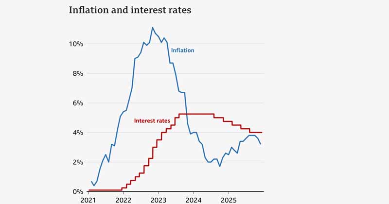ഇംഗ്ലണ്ടിലെ കേന്ദ്രബാങ്കായ ബാങ്ക് ഓഫ് ഇംഗ്ലണ്ട് പലിശനിരക്ക് കുറയ്ക്കാൻ സാധ്യതയുണ്ടന്ന റിപ്പോർട്ടുകൾ പുറത്തുവന്നു. നിലവിലെ 4 ശതമാനത്തിൽ നിന്ന് 3.75 ശതമാനത്തിലേക്ക് പലിശ നിരക്ക് കുറയ്ക്കുമെന്നാണ് സാമ്പത്തിക വിദഗ്ധരുടെ വിലയിരുത്തൽ. 2023 ഫെബ്രുവരിക്കു ശേഷം ഏറ്റവും താഴ്ന്ന നിരക്കിലേക്കാകും ഇതോടെ ബാങ്ക് നിരക്ക് എത്തുക.