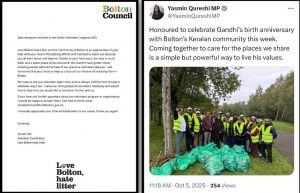 ബോൾട്ടൻ: ഗാന്ധിജയന്തി ദിനത്തിൽ ബോൾട്ടൻ ചിൽഡ്രൻസ് പാർക്കിൽ ഐ സി (യു കെ) – കേരള ചാപ്റ്റർ മിഡ്‌ലാൻഡ്സ് ഏരിയയുടെ ആഭിമുഖ്യത്തിൽ സംഘടിപ്പിച്ച തെരുവ് ശുചീകരണത്തിൽ പങ്കാളികളായ 22 വോളന്റിയർമാർക്ക് ബോൾട്ടൻ കൗൺസിലിന്റെ അഭിന്ദനം.