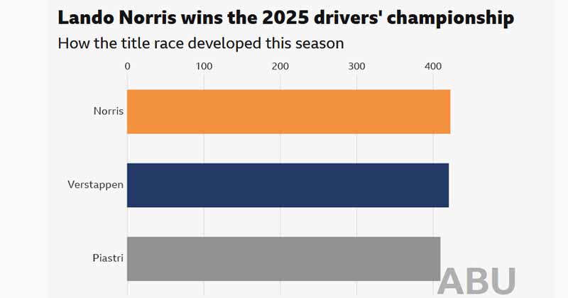 അവസാന രണ്ട് റേസുകളിലുണ്ടായ നിരാശകൾക്കുശേഷം അബുദാബിയിൽ കാറിൻ്റെ കരുത്തും ടീമിൻ്റെ കൃത്യമായ തന്ത്രങ്ങളും ആശ്രയിച്ചാണ് ബ്രിട്ടീഷ് താരം തന്റെ കാലങ്ങളായുള്ള സ്വപ്നം സാക്ഷാത്കരിച്ചത്. പതിനാറ് വർഷത്തെ പരിശ്രമത്തിന്റെ നേട്ടമാണ് ഇത് എന്ന് വികാരഭരിതനായ നൊറിസ് പ്രതികരിച്ചു. വെർസ്റ്റാപ്പൻ വിജയിച്ചെങ്കിലും നൊറിസ് മൂന്നാം സ്ഥാനത്തെത്തിയതോടെ കിരീടം ഉറപ്പായി. 2008ൽ ലൂയിസ് ഹാമിൽട്ടൺ നേടിയതിനുശേഷം ഒരു ബ്രിട്ടീഷ് ഡ്രൈവർ ഫോർമുല–1 കിരീടം നേടുന്നത് ഇതാദ്യമായാണ്.