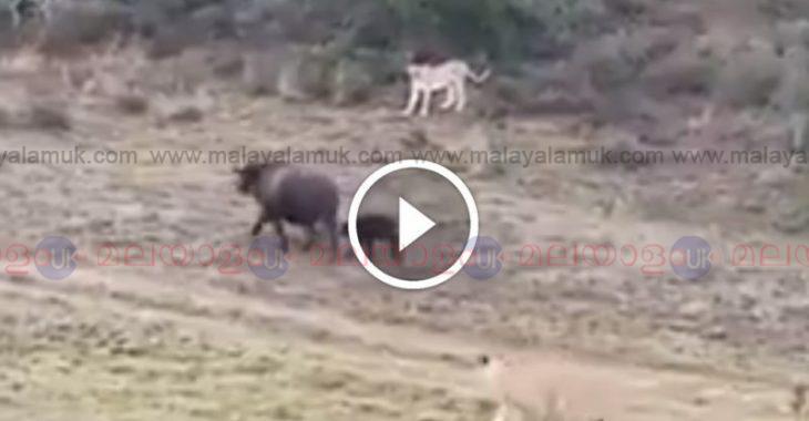 പക്ഷേ, ഈ സമയത്ത് പതറിപ്പോകാതെ തന്റെ കുഞ്ഞിനെ രക്ഷിക്കാന് രണ്ടും കല്പ്പിച്ച് അമ്മ കാട്ടുപോത്ത് മുന്നോട്ടുവരുന്നതും കുഞ്ഞിനെ കടിച്ചെടുത്ത് ചെടികള്ക്കിടയില് മറിഞ്ഞ സിംഹവുമായി ഏറ്റുമുട്ടുന്നതും വീഡിയോയില് കാണാം.അവസാനം സിംഹത്തില് നിന്നും കുഞ്ഞിനെ രക്ഷിച്ച് കാട്ടുപോത്ത് കുഞ്ഞുമായി ഓടി രക്ഷപ്പെടുന്നതും വീഡിയോയുടെ അവസാന ഭാഗത്ത് കാണാം.