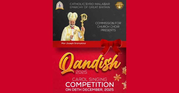 യുകെയിലെ സീറോ മലബാർ രൂപതയുടെ ചർച്ച് ക്വയർ കമ്മീഷൻ സംഘടിപ്പിക്കുന്ന ഓൾ യുകെ കരോൾ ഗാനമത്സരം “ 2025” ഡിസംബർ 6-ന് ലെസ്റ്ററിലെ Cedar’s Academy യിൽ നടക്കും. ഉച്ചയ്ക്ക് 1 മണിമുതൽ ആരംഭിക്കുന്ന ഈ സംഗീത മാമാങ്കം, ക്രിസ്മസിനെ പുതുമയോടെ ആഘോഷിക്കുന്നതിനും സമൂഹത്തെ ഒന്നിപ്പിക്കുന്നതിനുമുള്ള വേദിയാകും.