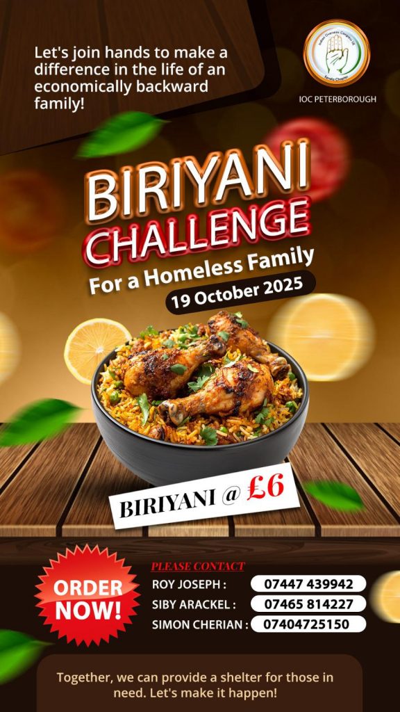 ഭവന നിർമ്മാണ പദ്ധതിക്കായുള്ള ധനസമാഹരണാർത്ഥം ഐ ഓ സി (യു കെ) പീറ്റർബോറോ യൂണിറ്റിന്റെ മേൽനോട്ടത്തിൽ ഞായറാഴ്ച സംഘടിപ്പിച്ച ‘ബിരിയാണി ചലഞ്ച്’ വലിയ വിജയമായത് സംഘാടകരുടെ ആത്മവിശ്വാസം തെല്ലൊന്നുമല്ല വർധിപ്പിച്ചിരിക്കുന്നത്. വെറും രണ്ട് ദിവസം കൊണ്ട് മുന്നൂറോളം പാക്കറ്റ് ബിരിയാണി ഓർഡറുകൾ ഈ വലിയ ജീവകാരുണ്യ പദ്ധതിയുടെ ഭാഗമായി ലഭിച്ചതായും ഏകദേശം ഒരു ലക്ഷത്തോളം രൂപ നീക്കിയിരിപ്പ് തുക സ്വരൂപിക്കാൻ സാധിച്ചതായും സംഘാടകർ അറിയിച്ചു.