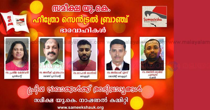സമീക്ഷ യുകെയുടെ ഈ വർഷത്തെ ബ്രാഞ്ച് സമ്മേളനങ്ങൾക്ക് തുടക്കം കുറിച്ചുകൊണ്ട് ഹീത്രൂ സെൻട്രൽ ബ്രാഞ്ചിന്റെ സമ്മേളനം 25-07-21(ഞായറാഴ്ച) നടന്നു. പ്രസ്തുത യോഗത്തിൽ ദേശീയ പ്രസിഡന്റ് സ. സ്വപ്ന പ്രവീൺ, സെക്രട്ടറി സ. ദിനേശ് വെള്ളാപ്പള്ളി, ബ്രാഞ്ചിന്റെ ചുമതലയുള്ള, സെക്രട്ടറിയേറ്റ് മെമ്പർ സ. മോൻസി എന്നിവർ പങ്കെടുത്തു. ബ്രാഞ്ച് പ്രസിഡന്റ് സ. പ്രതിഭ കേശവൻ അധ്യക്ഷത വഹിച്ച സമ്മേളനത്തിന് ബ്രാഞ്ച് സെക്രട്ടറി സ. റോഹൻ മോൻസിയുടെ സ്വാഗത പ്രസംഗത്തോടെ തുടക്കമായി. വൈസ് പ്രസിഡന്റ്: സ .അനീഷ് എബ്രഹാം, ജോയിന്റ് സെക്രട്ടറി:സ .അഭിലാഷ് എസ് എന്നിവർ സമ്മേളനത്തിന് അഭിവാദ്യങ്ങൾ അർപ്പിച്ചുകൊണ്ട് സംസാരിച്ചു.