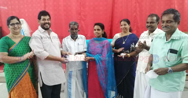 ഇടുക്കി ചാരിറ്റി ഗ്രൂപ്പ് നടത്തിയ ഓണം ചാരിറ്റിയിലൂടെ ശേഖരിച്ച 2095 പൗണ്ട് ( Rs 211176) രണ്ടായി വീതിച്ചു