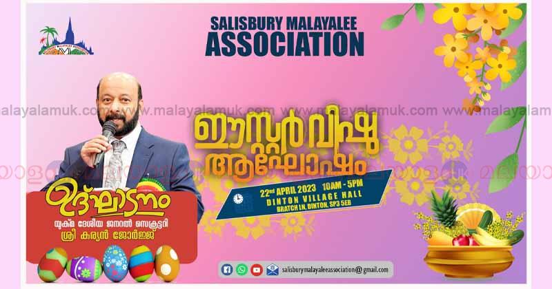 സാലിസ്ബറി: സാലിസ്ബറി മലയാളി അസ്സോസിയഷൻ ഈസ്റ്റർ വിഷു ആഘോഷം ഏപ്രിൽ 22 ശനിയാഴ്ച നടന്നു. യുക്മ ദേശീയ ജനറൽ സെക്രട്ടറി ശ്രീ കുര്യൻ ജോർജ്ജ് മുഖ്യാതിഥിയായി പങ്കെടുത്തുകൊണ്ട് ആഘോഷങ്ങൾ ഉദ്ഘാടനം നിർവ്വഹിച്ചു .