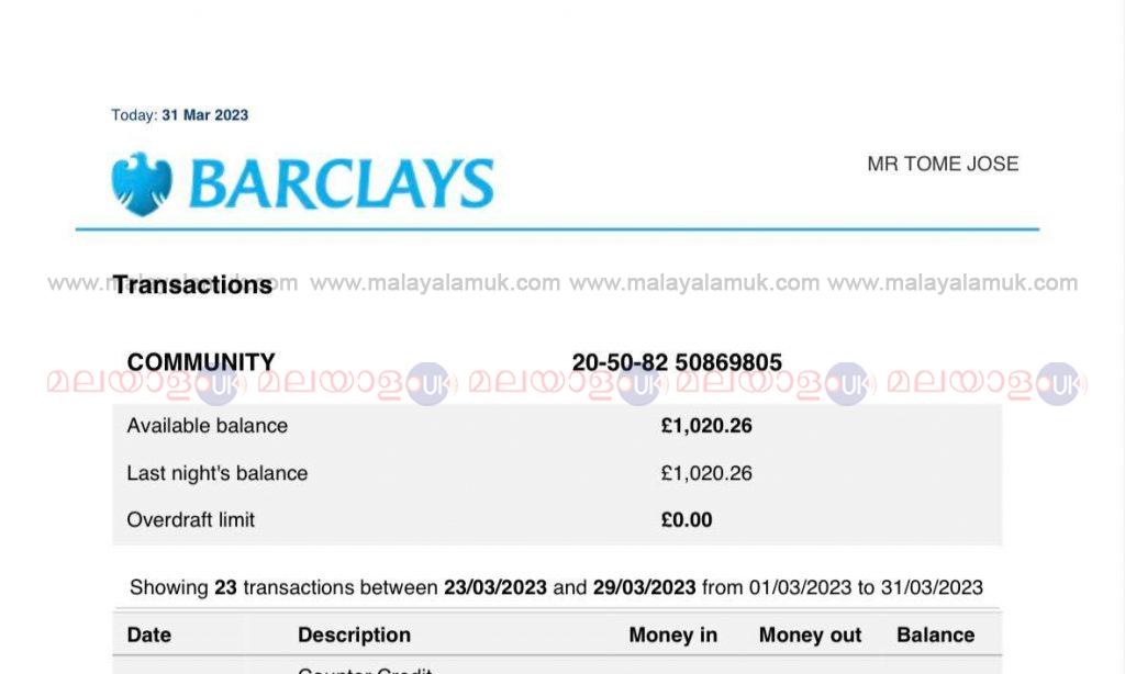 ഇടുക്കി ചാരിറ്റി നടത്തുന്ന ഈസ്റ്റർ ചാരിറ്റിക്ക് ഇതുവരെ 1680 പൗണ്ട് ലഭിച്ചു ബാങ്കിന്റെ സമ്മറി സ്റ്റേറ്റ് മെന്റ് പ്രസിദ്ധീകരിക്കുന്നു .ചാരിറ്റി ഏപ്രിൽ 10 തിങ്കളാഴ്ച അവസാനിക്കും. തൊടുപുഴ ആലക്കോട് ചിലവ് സ്വാദേശി കമല ശ്രീധരന്റെ ചികിത്സക്ക് വേണ്ടി ഇടുക്കി ചാരിറ്റി ഗ്രൂപ്പ് നടത്തുന്ന ഈസ്റ്റർ ചാരിറ്റിക്ക് ഇതുവരെ 1680 പൗണ്ട് ലഭിച്ചു . സമ്മറി സ്റ്റേറ്റ് മെന്റ് താഴെ പ്രസിദ്ധീകരിക്കുന്നു ചാരിറ്റി ഏപ്രിൽ 10 തിങ്കളാഴ്ച അവസാനിക്കും , ലഭിക്കുന്ന തുക തൊട്ടടുത്ത ദിവസം കമല ശ്രീധരനു വീട്ടിലെത്തി കൈമാറും എന്നറിയിക്കുന്നു.
