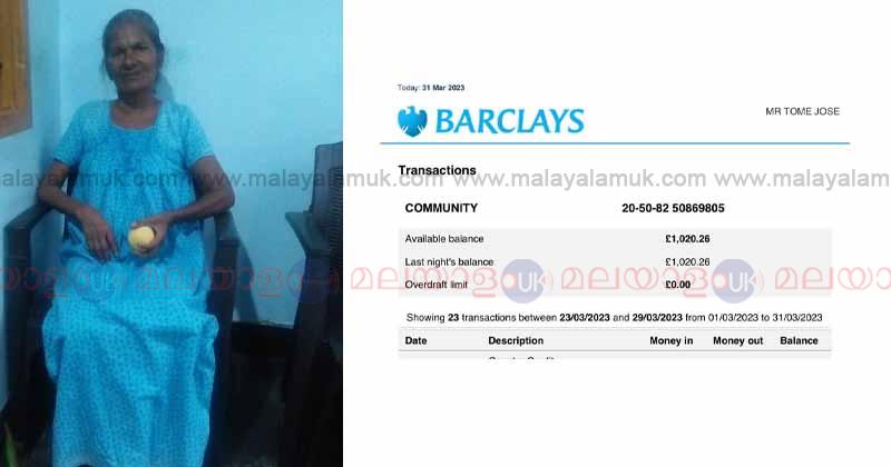 ഇടുക്കി ചാരിറ്റി നടത്തുന്ന ഈസ്റ്റർ ചാരിറ്റിക്ക് ഇതുവരെ 1680 പൗണ്ട് ലഭിച്ചു ബാങ്കിന്റെ സമ്മറി സ്റ്റേറ്റ് മെന്റ് പ്രസിദ്ധീകരിക്കുന്നു .ചാരിറ്റി ഏപ്രിൽ 10 തിങ്കളാഴ്ച അവസാനിക്കും. തൊടുപുഴ ആലക്കോട് ചിലവ് സ്വാദേശി കമല ശ്രീധരന്റെ ചികിത്സക്ക് വേണ്ടി ഇടുക്കി ചാരിറ്റി ഗ്രൂപ്പ് നടത്തുന്ന ഈസ്റ്റർ ചാരിറ്റിക്ക് ഇതുവരെ 1680 പൗണ്ട് ലഭിച്ചു . സമ്മറി സ്റ്റേറ്റ് മെന്റ് താഴെ പ്രസിദ്ധീകരിക്കുന്നു ചാരിറ്റി ഏപ്രിൽ 10 തിങ്കളാഴ്ച അവസാനിക്കും , ലഭിക്കുന്ന തുക തൊട്ടടുത്ത ദിവസം കമല ശ്രീധരനു വീട്ടിലെത്തി കൈമാറും എന്നറിയിക്കുന്നു.
