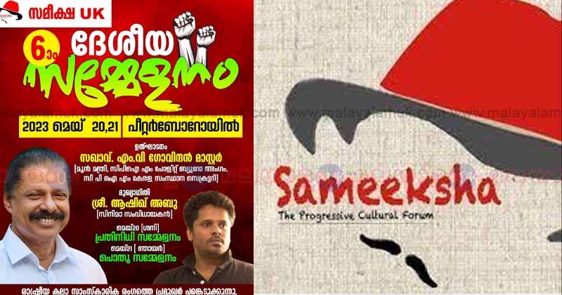 യു.കെ മലയാളികൾക്കിടയിൽ പുരോഗമനാശയങ്ങളുയർത്തി സാമൂഹിക-സാംസ്കാരിക രംഗത്ത് ചരിത്ര പരമായ ചുവട് വെയ്പ്പുകളോടെ “സമീക്ഷ യു.കെ ” ആറാം ദേശീയ സമ്മേളനത്തിന് പീറ്റർ ബോറോ ഒരുങ്ങുന്നു. കഴിഞ്ഞ കാലത്തെ പ്രവർത്തനങ്ങളിലൂടെ യു.കെ മലയാളികളുടെ പ്രതീക്ഷയായി ഉയരാൻ സാധിച്ച പുരോഗമന കലാ സാംസ്കാരിക സംഘടന എന്ന ആത്മവിശ്വാസത്തോടെയാണ് സമീക്ഷ യുകെ സമ്മേളനത്തിലേക്ക് കടക്കുന്നത്.