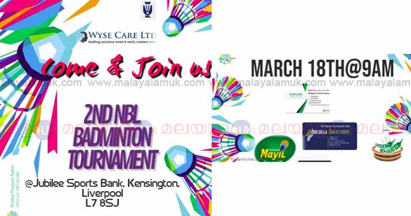 നെറ്റ് ബ്ലാസ്റ്റേഴ്സ് ലിവർപൂളിന്റെ ആഭിമുഖ്യത്തിൽ 2023 മാർച്ച് മാസം 18 ആം തിയതി രാവിലെ 9 മണി മുതൽ വൈകീട്ട് 6 മണി വരെ യുകെയിലെ പ്രഗത്ഭരായ 32 ടീമുകൾ പങ്കെടുക്കുന്ന ആവേശോജ്വലമായ രണ്ടാമത് എൻ ബി എൽ കപ്പ് ബാഡ്മിന്റൺ ടൂർണമെന്റ് ലിവർപൂൾ കെൻസിങ്ടണിൽ ഉള്ള ജൂബിലി സ്പോർട്സ് ബാങ്കിൽ വച്ച് നടത്തപെടുന്നു. രാവിലേ 9 മണിക്ക് രെജിസ്ട്രേഷൻ ആരംഭിക്കും. കൃത്യം 9.15 നു തന്നെ ഗ്രൂപ്പ്തല മത്സരങ്ങൾക്കു തുടക്കം കുറിക്കും.