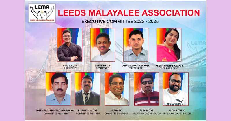 ലീഡ്സ് മലയാളി അസോസിയേഷന് നവ സാരഥികൾ. യുകെയിലെ വലിയ മലയാളി സംഘടനയായ ലീഡ്സ് മലയാളി അസോസിയേഷന്റെ പുതിയ പ്രസിഡന്റായി സാബുഘോഷിനേയും സെക്രട്ടറിയായി ബിനോയി ജേക്കബിനേയും ട്രഷററായി അജിനു സൈമൺ മാർക്കോസിനേയും തെരഞ്ഞടുത്തു. വൈസ് പ്രസിഡന്റായി റീന ഫിലിപ്സ് കടവിലിനേയും പ്രോഗ്രാം കോർഡിനേറ്ററായി അലക്സ് ജേക്കബിനേയും നിഥിൻ സ്റ്റാൻലിയേയും കമ്മറ്റി മെംബേഴ്സായി അജു ബേബിയും ബിനുമോൻ ജേക്കബും ജോസ് സെബാസ്റ്റൃൻ പടിപ്പുരയ്ക്കലും തെരഞ്ഞെടുക്കപ്പെട്ടു.