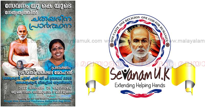 സേവനം യു കെ യുടെ ആഭിമുഖ്യത്തിൽ ഇന്ന് 28 ബുധനാഴ്ച വൈകിട്ട് 5 മണി മുതൽ നടക്കുന്ന ചതയദിന പ്രാർത്ഥനയിൽ അനുഗ്രഹ പ്രഭാഷണം നടത്തുന്നത് കോട്ടയം ജില്ലയിലെ മീനച്ചിൽ എസ്എൻഡിപി യൂണിയനിൽപ്പെട്ട തെക്കുംമുറി ശാഖ (3385) സെക്രട്ടറിയായി സേവനമനുഷ്ഠിച്ചു വരുന്ന ബഹുമാനപ്പെട്ട ശ്രീമതി ഷൈല മോഹൻ ആണ്.