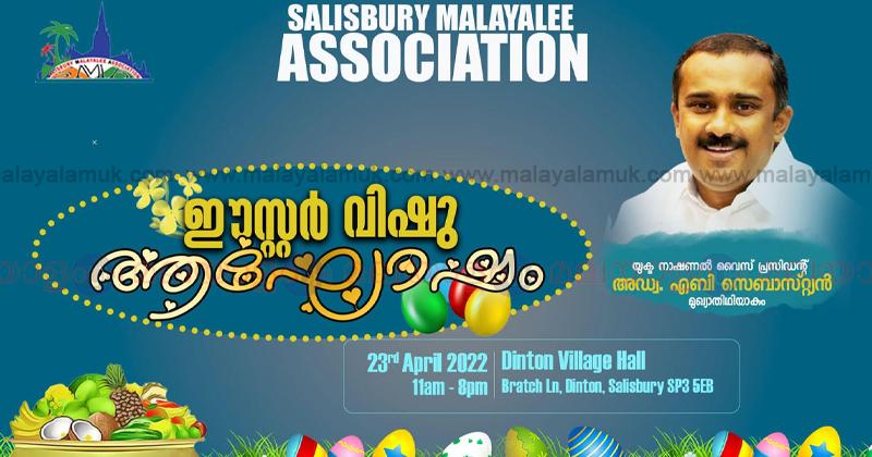 സാലിസ്ബറി: സാലിസ്ബറി മലയാളി അസ്സോസിയഷൻ ഈസ്റ്റർ വിഷു ആഘോഷം ഏപ്രിൽ 23 ശനിയാഴ്ച നടക്കും. യുക്മ വൈസ് പ്രസിഡന്റ് അഡ്വ.എബി സെബാസ്റ്റ്യൻ ആഘോഷങ്ങളിൽ മുഖ്യാതിഥിയായി പങ്കെടുക്കും.