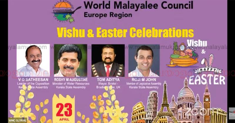 ലണ്ടൻ : വേൾഡ് മലയാളി കൗൺസിൽ യൂറോപ്പ് റീജിയൻ ഒരുക്കിയ ഈസ്റ്റർ, വിഷു ആഘോഷവും, ഈ വർഷം ജൂൺ 23,24,25 തീയതികളിൽ ബെഹറിനിൽ വച്ചു നടക്കാനിരിക്കുന്ന ഗ്ലോബൽ കോൺഫെറെൻസിന്റെ കിക്ക്ഓഫും. ഏപ്രിൽ 23ന് വൈകുന്നേരം നാലര മണിക്ക് പ്രതിപക്ഷനേതാവ് ശ്രീ വി ഡി സതീശനും, ജലസേചനമന്ത്രി ശ്രീ റോഷി അഗസ്റ്റിനും ചേർന്ന് നിർവഹിച്ചു. ശ്രീ റോജി എം ജോൺ എം എൽ എ, ബ്രിട്ടണിലെ ബ്രിസ്റ്റോളിലെ ബ്രാട് ലെ സ്റ്റോക്ക് മേയർ ശ്രീ ടോം ആദിത്യ തുടങ്ങി ലോകത്തിലെ വിവിധ ഭാഗങ്ങളിൽനിന്നുള്ള പ്രമുഖ പ്രവാസി വ്യവസായികളുൾപ്പെടെയുള്ള കലാ സാംസ്കാരിക, രാഷ്ട്രീയ നായകരുടെ സാന്നിധ്യത്തിൽ വൈവിദ്ധ്യമാർന്ന വിവിധ കലാ പരിപാടികളോടെ നടത്തപ്പെട്ടു.