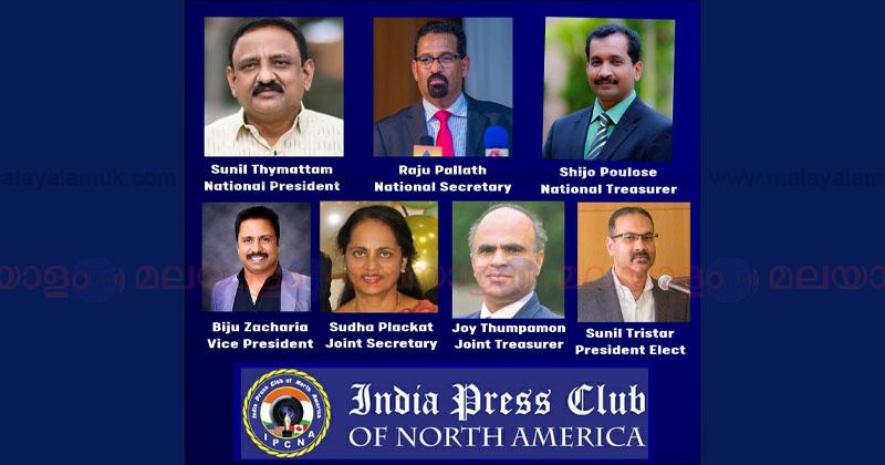 ന്യൂയോർക്ക് : അമേരിക്കയിലെ മലയാളി മാധ്യമ പ്രവർത്തകരുടെ കൂട്ടായ്മയായ ഇന്ത്യ പ്രസ് ക്ലബ്ബ് ഓഫ് നോർത്ത് അമേരിക്കയ്ക്ക് നവ നേതൃത്വം. സുനിൽ തൈമറ്റം – പ്രസിഡണ്ട് ,ജനറൽ സെക്രട്ടറിയായി രാജു പള്ളത്ത് , ട്രഷറർ ആയി ഷിജോ പൗലോസ്, വൈസ് പ്രസിഡന്റായി ബിജു സഖറിയാ, ജോയിന്റ് സെക്രട്ടറിയായി സുധ പ്ലക്കാട്ട് , ജോയിന്റ് ട്രഷറർ ആയി ജോയി തുമ്പമൺ എന്നിവരാണ് ഇന്ത്യ പ്രസ് ക്ലബ് എക്സിക്യൂട്ടീവ് കമ്മറ്റി അംഗങ്ങളായി തെരഞ്ഞെടുക്കപ്പെട്ടത്. സുനിൽ ട്രൈസ്റ്റാർ ആണ് പ്രസിഡന്റ് എലെക്ട് .