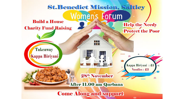 ജന്മനാടിന് കൈത്താങ്ങാകാനായി പാവപ്പെട്ട ഒരു കുടുംബത്തിന് വീട് വെച്ച് കൊടുക്കാനായി സൾട്ട്ലീ സെന്റ് ബെനഡിക് മിഷനും വുമൺ ഫോറവും ഒന്നിച്ചു നടത്തിയ ചാരിറ്റി ഇവന്റ് വൻവിജയമായി . നവംബർ ഇരുപത്തിയെട്ടാം തീയതി ഞായറാഴ്ചയാണ് ചാരിറ്റി ഇവൻറ് നടന്നത്. ചാരിറ്റിക്ക് വേണ്ടി പണം സ്വരൂപിക്കുന്നതിനായി മുതിർന്നവർക്ക് കപ്പ ബിരിയാണിയും കുട്ടികൾക്ക് നൂഡിൽസുമാണ് ഒരുക്കിയിരുന്നത്. ചാരിറ്റി ഇവന്റ് വൻ വിജയമാക്കിയ എല്ലാവർക്കും ഇടവകവികാരി ഫാ . ടെറിൻ മുല്ലക്കരയും പള്ളി കമ്മിറ്റി അംഗങ്ങളും നന്ദിപറഞ്ഞു.