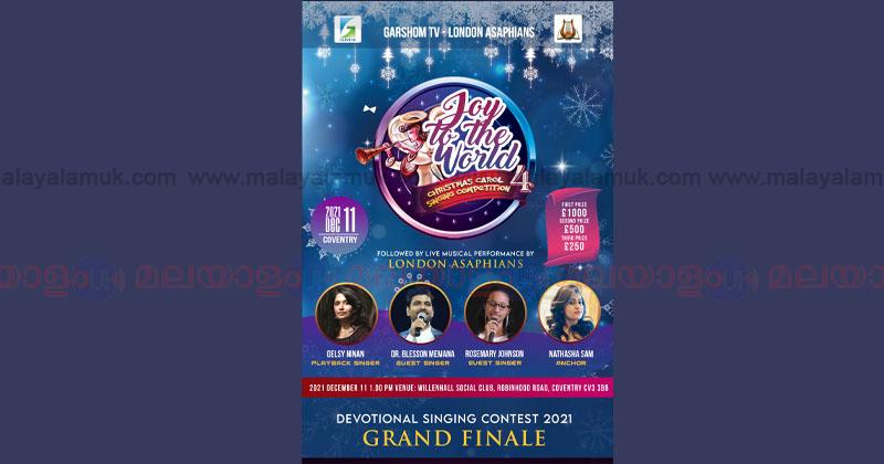 ഈ വർഷത്തിന്റെ ആരംഭത്തിൽ ഗർഷോം ടിവിയും ലണ്ടൻ അസാഫിയൻസും സംയുക്തമായി സംഘടിപ്പിച്ച കുട്ടികൾക്കായുള്ള ‘ഡിവോഷണൽ സിംഗിംഗ് കോണ്ടെസ്റ്റ് 2021’ ന്റെ ഗ്രാൻഡ് ഫിനാലെയും ഈ വേദിയിൽ വച്ച് തന്നെ നടക്കും. മൂന്ന് ക്യാറ്റഗറികളിയായി ഫൈനലിലേക്ക് തെരഞ്ഞെടുക്കപ്പെട്ട 15 ഗായകരാണ് ജോയ് ടു ദി വേൾഡിന്റെ വേദിയിൽ മത്സരിക്കുന്നത്. വിജയികൾക്ക് ക്യാഷ് അവാർഡുകളും ട്രോഫികളും ഏർപ്പെടുത്തിയിട്ടുണ്ട്.