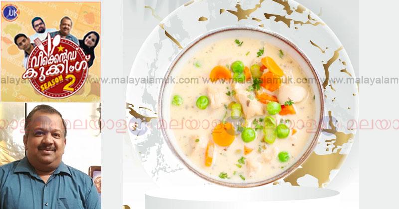 ചിക്കൻ ബോയിൽ ചെയ്ത് ചെറുതായി ചീന്തി വയ്ക്കുക .സബോള ,മഷ്റൂം ,ക്യാരറ്റ് ,പൊട്ടറ്റോ ,സെലറി എല്ലാം വളരെ ചെറിയതായി അരിഞ്ഞു വയ്ക്കുക .ഒരു സോസ് പോട്ടിൽ ബട്ടർ ചൂടാക്കി .സബോള,ക്യാരറ്റ് ,സെലറി എന്നിവ വഴറ്റുക .വഴന്നു വരുമ്പോൾ മഷ്റൂം ,വെളുത്തുള്ളി എന്നിവ ചേർത്ത് ഇളക്കുക(2 -3 മിനിറ്റ്) . പ്ലെയിൻ ഫ്ലോർ കൂടി ചേർത്തിളക്കി ചിക്കൻ സ്റ്റോക്കും പൊട്ടറ്റോയും ഉപ്പും കുരുമുളക് പൊടിയും ചേർത്ത് ചെറുതീയിൽ പൊട്ടറ്റോ ഒരു വിധം കുക്ക് ആകുന്നത് വരെ ചൂടാക്കുക(10 -15 മിനിറ്റ്) . ഇതിലേയ്ക്ക് കുക്ക് ചെയ്തു വച്ചിരിക്കുന്ന ചിക്കൻ, ഗ്രീൻ പീസ്,കോൺ ക്രീം എന്നിവ ചേർത്ത് വീണ്ടും ഒരു 5 മിനിറ്റ് കൂടി ചെറുതീയിൽ തുറന്നു വച്ച് കുക്ക് ചെയ്യുക .ഇപ്പോൾ നല്ല കുറുകിയ രീതിയിൽ ആവും . ഉപ്പും എരിവും നോക്കി ആവശ്യമെങ്കിൽ ചേർത്ത് ചോപ്പ് ചെയ്ത് വച്ചിരിക്കുന്ന പാർസിലി കൊണ്ട് ഗാർണിഷ് ചെയ്തു ചൂടോടെ സെർവ് ചെയ്യുക’
