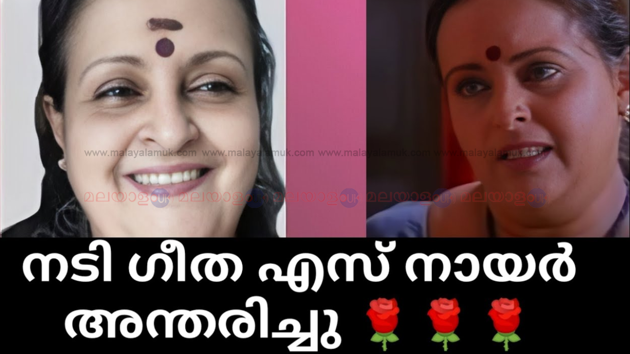 മലയാള സിനിമാനടി ഗീത എസ് നായര് അന്തരിച്ചു. അറുപത്തിമൂന്ന് വയസ്സായിരുന്നു. മിനി സ്ക്രീനിലും ബിഗ്സ്ക്രീനിലും സജീവമായിരുന്നു ഗീത.