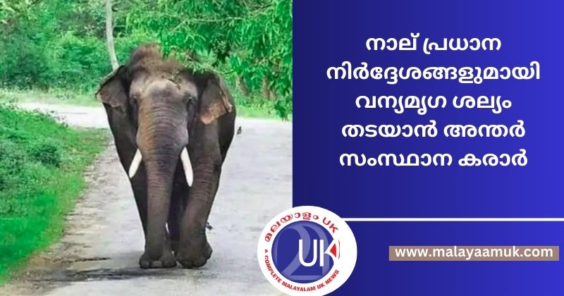 അടുത്തിടെ നിരന്തരമായി ഉണ്ടാകുന്ന വന്യമൃഗ ശല്യവുമായി ബന്ധപ്പെട്ട അന്തർ സംസ്ഥാന കരാറിൽ കേരളവും കർണാടകയും ഒപ്പിട്ടു. പ്രധാനമായും നാല് നിർദ്ദേശങ്ങളാണ് കരാറിലുള്ളത് . കേരള വനംവകുപ്പ് മന്ത്രി എ കെ ശശീന്ദ്രൻ കർണാടക വനം വകുപ്പ് മന്ത്രി ഈശ്വർ ഖൺഡ്രെ എന്നിവരുടെ നേതൃത്വത്തിലാണ് യോഗം ചേർന്നത്.