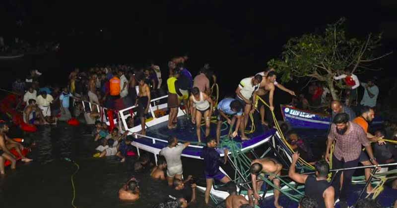 പരപ്പനങ്ങാടി-താനൂർ നഗരസഭാ അതിർത്തിയിലുള്ള ഒട്ടുംപുറം തൂവൽതീരം ബീച്ചിൽ വിനോദ യാത്ര ബോട്ട് മുങ്ങി വൻ ദുരന്തം. 21 പേർ മരിച്ചതായി പ്രാഥമിക വിവരം. മരിച്ചവരില് ഏറെയും സ്ത്രീകളും കുട്ടികളുമാണെന്നാണ് വിവരം. 35- ഓളം യാത്രികരുമായിട്ടാണ് ബോട്ട് മുങ്ങിയത്. തീരത്തിന് 300 മീറ്റർ അകലെയാണ് ബോട്ട് മുങ്ങിയത്. മുഖ്യമന്ത്രി പിണറായി വിജയൻ നാളെ രാവിലെ സ്ഥലത്തെത്തും.
