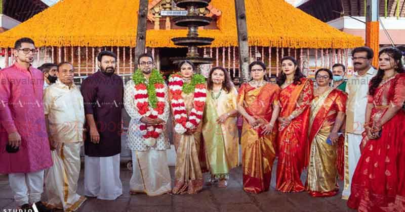 രവി പിള്ളയുടെ മകൻ ഗണേഷിന്റേയും അഞ്ജനയുടേയും വിവാഹത്തിന് ആശംസകൾ നേരാൻ മോഹൻലാലും ഭാര്യ സുചിത്രയും നേരിട്ടെത്തുകയായിരുന്നു. ഗുരുവായൂർ അമ്പലത്തിൽ വച്ചാണ് വിവാഹ ചടങ്ങുകൾ നടന്നത്. മോഹൻലാൽ അതിരാവിലെ തന്നെ എത്തി ക്ഷേത്ര ദർശനം നടത്തിയിരുന്നു.