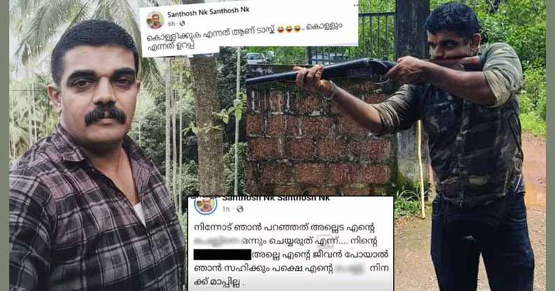 വൈകിട്ട് 4.23ന് സന്തോഷ് തോക്കേന്തി നിൽക്കുന്ന ഒരു ചിത്രം ഫേസ്ബുക്കിൽ പോസ്റ്റ് ചെയ്തിരുന്നു. ‘കൊള്ളിക്കുക എന്നത് ആണ് ടാസ്ക്. കൊള്ളിക്കും എന്നത് ഉറപ്പ്’ എന്ന അടിക്കുറിപ്പോടെ തോക്കേന്തി നിൽക്കുന്ന ചിത്രവും അദ്ദേഹം പോസ്റ്റ് ചെയ്തിട്ടുണ്ട്. ഇതിന് ശേഷമാണ് ഇയാൾ കൊല നടത്തിയതെന്നാണ് ലഭിക്കുന്നവിവരം.