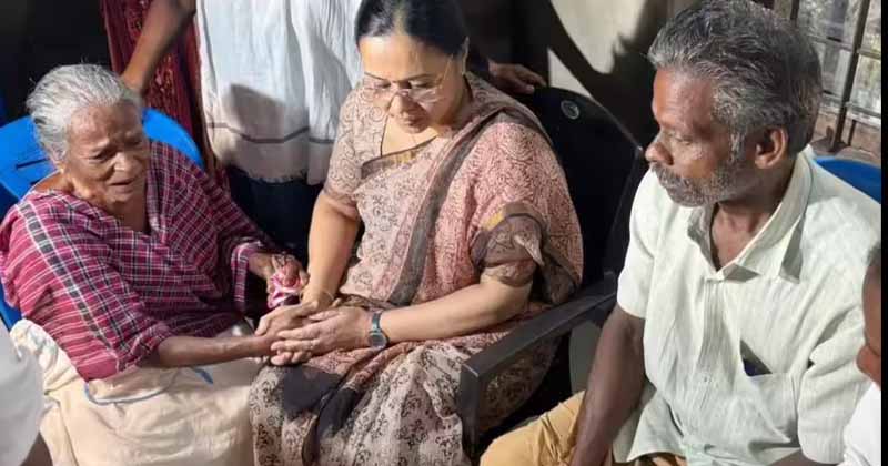 സിപിഎം പ്രവർത്തകർ ഒരുക്കിയ സുരക്ഷയിൽ പ്രാദേശിക പോലീസ് സ്റ്റേഷനെ മുൻകൂട്ടി അറിയിക്കാതെ മന്ത്രി വീണാ ജോർജ്, കഴിഞ്ഞ ദിവസം മെഡിക്കൽ കോളേജിലെ അപകടത്തിൽ മരിച്ച ഡി.ബിന്ദുവിന്റെ വീട്ടിലെത്തി. തലയോലപ്പറമ്പ് ഉമ്മാംകുന്ന് മേപ്പത്തുകുന്നേൽ വീട്ടിൽ ഞായറാഴ്ച രാവിലെ ഏഴുമണിയോടെ എത്തിയ മന്ത്രി, 20 മിനിറ്റോളം അവിടെ ചെലവഴിച്ചു.