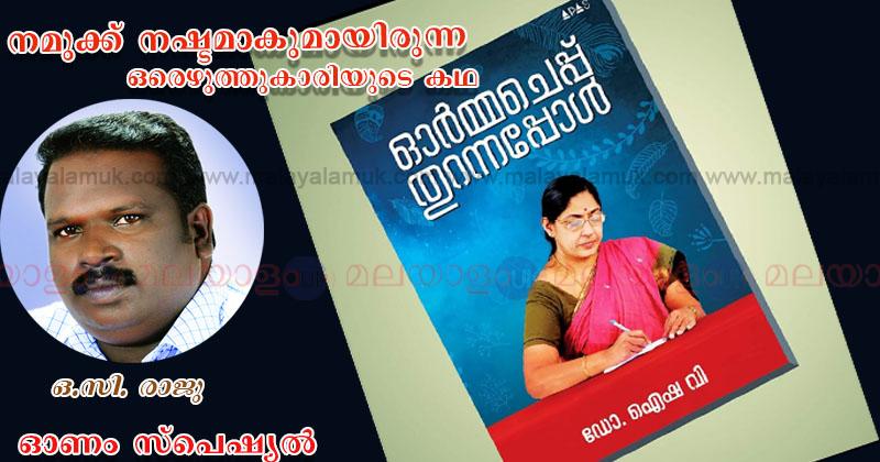 “ഓസീ, എനിക്ക് പരിചയമുള്ള ഒരു ടീച്ചറുണ്ട്. അവർ എഴുതിയ ഒരു പംക്തിയുണ്ട് അതൊന്ന് പുസ്തകമാക്കികൊടുക്കണം.”