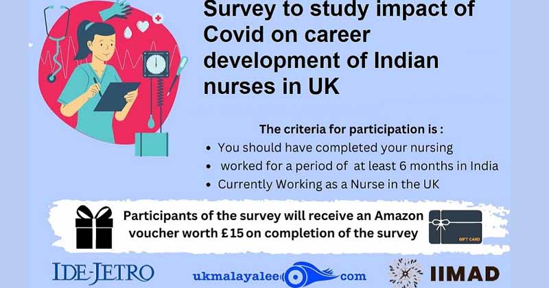 ലണ്ടൻ: യുകെയിൽ ജോലി ചെയ്യുന്ന ഇന്ത്യൻ നേഴ്സുമാരുടെ കോവിഡിന് ശേഷമുള്ള മാറ്റങ്ങളെ കുറിച്ച് പഠനത്തിനൊരുങ്ങി അധികൃതർ. ഇൻസ്റ്റിറ്റ്യൂട്ട് ഓഫ് ഡെവലപ്പിംഗ് ഇക്കണോമീസ് (ഐഡിഇ-ജെട്രോ), ജപ്പാൻ, ഇന്റർനാഷണൽ ഇൻസ്റ്റിറ്റ്യൂട്ട് ഓഫ് മൈഗ്രേഷൻ ആൻഡ് ഡെവലപ്മെന്റ് (ഐഐഎംഎഡി) തിരുവനന്തപുരം എന്നീ മൂന്ന് കേന്ദ്രങ്ങൾ ചേർന്നാണ് ഗവേഷണം നടത്തുന്നത്. ഇതിനായി ഇതിൽ പങ്കുചേരാൻ യുകെയിലെ നേഴ്സിംഗ് കമ്മ്യൂണിറ്റി അംഗങ്ങളെ ക്ഷണിക്കുന്നുണ്ട്.