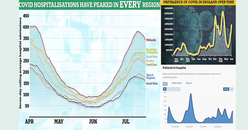 രാജ്യത്തെ 20 പേരിൽ ഒരാൾക്കെങ്കിലും കോവിഡ് ബാധിച്ചിട്ടുണ്ടെന്ന കണക്കുകൾക്ക് പുറകെയാണ് രോഗം ബാധിച്ച് ആശുപത്രി പ്രവേശിപ്പിക്കപ്പെടുന്നവരുടെ എണ്ണം വർധിച്ചതായുള്ള റിപ്പോർട്ടുകളും പുറത്തുവന്നത് . രോഗ വ്യാപനത്തിന് തടയിടാൻ മാസ്ക് ധരിക്കുക സാധ്യമായ മേഖലകളിൽ വർക്ക് ഫ്രം ഹോമിലൂടെ ജോലി നിർവഹിക്കാൻ അനുവദിക്കുക തുടങ്ങിയ തീരുമാനങ്ങൾ കൈക്കൊള്ളാൻ വിദഗ്ധർ ഇതിനോടകം മന്ത്രിമാരോട് ആവശ്യപ്പെട്ട് കഴിഞ്ഞു.