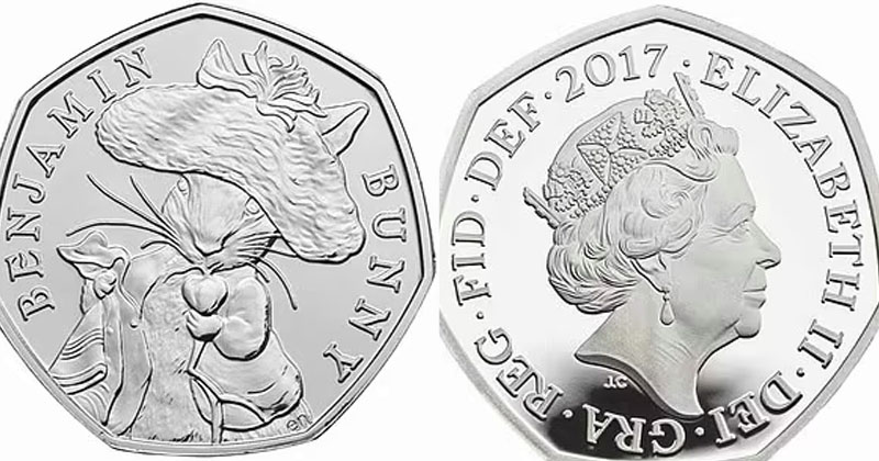 പീറ്റർ റാബിറ്റ്, ടോം കിറ്റൻ, ജെറമി ഫിഷർ എന്നിവരുടെ രൂപമുള്ള നാണയങ്ങൾക്കൊപ്പം 2017ലാണ് ബെഞ്ചമിൻ ബണ്ണി നാണയം പുറത്തിറക്കിയത്. കുട്ടികൾക്കു വേണ്ടി ചിത്രസഹിതമായ പുസ്തകങ്ങൾ രചിച്ച എഴുത്തുകാരിയായിരുന്നു ഹെലൻ ബീട്രിക്സ് പോട്ടർ അഥവാ ബീട്രിക്സ് പോട്ടറുടെ സ്മരണാർത്ഥം പുറത്തിറക്കിയ നാണയങ്ങളാണ് ഇവ. റോയൽ മിന്റ് ഒരു ദിവസം നാല്പത് ലക്ഷത്തോളം നാണയങ്ങൾ ഉണ്ടാക്കുന്നു. അതിനാൽ ഇടയ്ക്കിടെ പിഴവുകൾ ഉണ്ടാകും. ഇത്തരം പിഴവുകൾ ഉൾകൊള്ളുന്ന നാണയങ്ങൾ, നാണയ ശേഖരണമുള്ളവരെ ആകർഷിക്കും.