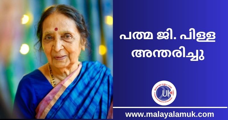 കാഞ്ഞിരപ്പള്ളി ∙പങ്ങപ്പാട്ട് പരേതനായ പ്രഫ. പി.ആർ. ഗോപാലകൃഷ്ണപിള്ളയുടെ ഭാര്യ പത്മ ജി. പിള്ള (85) അന്തരിച്ചു. തിങ്കൾ രാവിലെ 9 ന് വീട്ടിൽ എത്തിച്ച് 2 മണിക്ക് വീട്ടുവളപ്പിൽ സംസ്കാരം. കോഴിക്കോട് വെള്ളാവൂർ നെരമണ്ണിൽ കുടുംബാംഗമാണ്. പൊൻകുന്നം ഗവ. ഹൈസ്കൂൾ, കാഞ്ഞിരപ്പള്ളി കുന്നുംഭാഗം ഗവ. ഹൈസ്കൂൾ എന്നിവിടങ്ങളിൽ അധ്യാപികയായിരുന്നു. മക്കൾ: സുചിത്ര, ശ്രീജിത്ത്, സ്വപ്ന, ശ്രീകാന്ത് പങ്ങപ്പാട്ട്. മരുമക്കൾ: തൊടുപുഴ തയ്യിൽ ടി.എൻ. അജിത് കുമാർ (റിട്ട. എയർ വൈസ് മാർഷൽ), ആലുവ ഗോപീപത്മത്തിൽ രേഖ ശ്രീജിത്ത് (എൻജിനീയർ) , തൊടുപുഴ എടാട്ട് സുധീന്ദ്രനാഥ് (റിട്ട. എക്സിക്യൂട്ടീവ് ഡയറക്ടർ, ഹിന്ദുസ്ഥാൻ പെട്രോളിയം), ചോറ്റി കവിതാ നിവാസിൽ കവിത ശ്രീകാന്ത് ( എൻജിനീയർ).