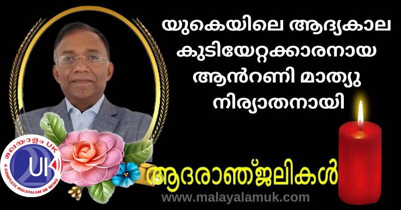 ആന്റണി മാത്യുവിൻെറ നിര്യാണത്തിൽ മലയാളം യുകെ ന്യൂസിന്റെ അനുശോചനം ബന്ധുക്കളെയും സുഹൃത്തുക്കളെയും അറിയിക്കുന്നു.