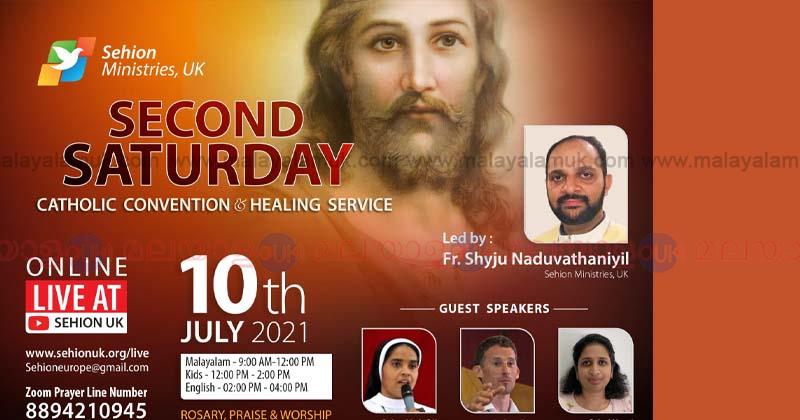 ഈശോയുടെ തിരുരക്തത്തിന്റെ ശാശ്വത സംരക്ഷണം മാനവരാശിയെ നിത്യ രക്ഷയിലേക്ക് നയിക്കുന്ന സുവിശേഷം പ്രഘോഷിച്ചുകൊണ്ട് ജൂലൈ മാസ രണ്ടാം ശനിയാഴ്ച്ച കൺവെൻഷൻ 10 ന് നടക്കും. സെഹിയോൻ മിനിസ്ട്രിയുടെ നേതൃത്വത്തിൽ ലോക സുവിശേഷവത്ക്കരണം ലക്ഷ്യമാക്കി യുകെയിൽ നിന്നും കത്തിപ്പടർന്ന വിവിധങ്ങളായ ശുശ്രൂഷകൾക്ക് ജീവവായുവായി നിലനിൽക്കുന്ന , സെഹിയോൻ യുകെ സ്ഥാപക ഡയറക്ടർ റവ. ഫാ . സോജി ഓലിക്കൽ തുടക്കമിട്ട , പ്രതിമാസ രണ്ടാം ശനിയാഴ്ച്ച ബൈബിൾ കൺവെൻഷൻ , വർത്തമാനകാല പ്രതിബന്ധങ്ങളെയും മഹാമാരിയുടെ പ്രത്യാഘാതത്തെയും യേശുവിൽ അതിജീവിച്ച് ,പ്രത്യാശയുടെ നാളെയെ പകർന്നുകൊണ്ട് ഓൺലൈനിലാണ് ഇത്തവണയും നടക്കുക.
