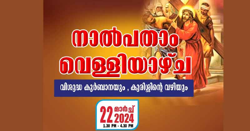 യേശുവിൻറെ പീഡാനുഭവം, കുരിശു മരണവും അനുസ്മരിക്കുന്ന കുരിശിന്റെ വഴി ശുശ്രൂഷയിലേക്കും ശേഷം നടക്കുന്ന വിശുദ്ധ കുർബാനയിലും പങ്കുചേർന്ന് അനുഗ്രഹം പ്രാപിക്കുന്നതിന് എല്ലാവരെയും ദൈവ നാമത്തിൽ സ്വാഗതം ചെയ്യുന്നു.
