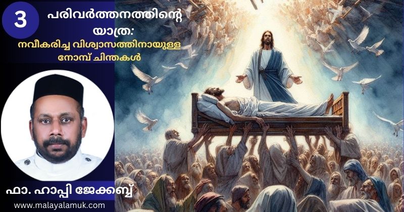 ഈ നോമ്പിൽ വിശ്വാസവും രോഗശാന്തിയും തമ്മിലുള്ള അടുത്ത ബന്ധവും, പാപമോചനത്തിനുള്ള കർത്താവിൻറെ അധികാരവും പരിവർത്തനത്തിന്റെ ശക്തിയും നമുക്ക് അടുത്ത് അറിയുവാൻ ശ്രമിക്കാം . നാം വിശ്വാസത്തോടെ മുൻപോട്ട് പോകുമ്പോൾ രോഗശാന്തിക്കുള്ള വാതിലുകൾ തുറക്കുകയും അതിലൂടെ നമുക്ക് അനുഗ്രഹങ്ങൾ ലഭിക്കുകയും, വിശ്വാസത്തോടെ അത്ഭുതങ്ങൾ ദർശിച്ച് ദൈവത്തെ മഹത്വപ്പെടുത്തുവാൻ നമുക്ക് ഇടയാകട്ടെ.