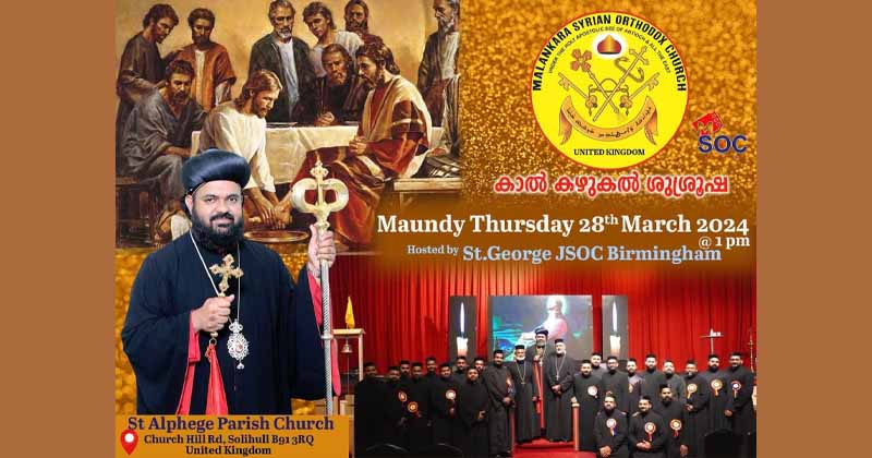 യുകെ പാത്രിയർക്കൽ വികാരി അഭിവന്ദ്യ ഐസക് മാർ ഒസ്താത്തിയോസ് തിരുമേനി വിവിധ ദേവാലയങ്ങളിൽ ശുശ്രൂഷകൾക്ക് നേതൃത്വം നല്കും. കൂടാതെ മാർച്ച് 28 പെസഹാ വ്യാഴാഴ്ച, കർത്താവ് ശിഷ്യൻമാരുടെ കാൽ കഴുകഴിയതിനെ അനുസ്മരിക്കുന്നതിൻറെ ഭാഗമായി നടത്തുന്ന കാൽകഴുകൽ ശുശ്രൂഷ അഭിവന്ദ്യ പിതാവിൻറെ മഹനീയ കാർമ്മികത്വത്തിൽ നടത്തപ്പെടും. ബർമ്മിങ്ങ്ഹാമിലെ St. ജോർജ് ദേവാലയമാണ് കൃത്യം 1 മണിക്ക് തുടങ്ങുന്ന പ്രസ്തുത ചടങ്ങുകൾക്ക് ആതിഥേയത്വം വഹിക്കുന്നത്.