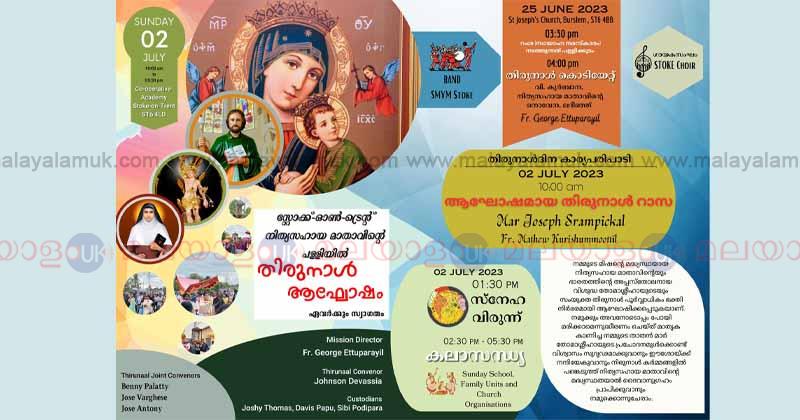 ഗ്രേറ്റ് ബ്രിട്ടൻ രൂപതയുടെ കീഴിലുള്ള ഏറ്റവും വലിയ മിഷനുകളിൽ ഒന്നായ സ്റ്റോക്ക് ഓൺ ട്രെൻഡ് മിഷനിൽ നിത്യസഹായ മാതാവിൻറെയും വിശുദ്ധ തോമാശ്ലീഹായുടെയും സംയുക്ത തിരുനാൾ ജൂലൈ 2 -ന് പൂർവ്വാധികം ഭക്തിനിർഭരമായി കോ-ഓപ്പറേറ്റീവ് അക്കാഡമി , സ്റ്റോക്ക് ഓൺ ട്രെൻഡിൽ വച്ച് നടത്തപ്പെടുന്നതാണ്.