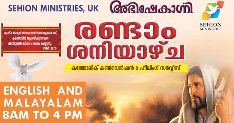 ഫെബ്രുവരി മാസ അഭിഷേകാഗ്നി രണ്ടാം ശനിയാഴ്ച്ച ബൈബിൾ കൺവെൻഷൻ 11 ന് ബർമിങ്ഹാം ബെഥേൽ കൺവെൻഷൻ സെന്റെറിൽ നടക്കും.ഗ്രേറ്റ് ബ്രിട്ടൻ സീറോ മലബാർ രൂപത വികാരി ജനറാൾ മോൺസിഞ്ഞോർ ജിനോ അരീക്കാട്ട് എം.സി.ബി.എസ് മുഖ്യ കാർമ്മികനായി കൺവെൻഷനിൽ പങ്കെടുക്കും . ക്രൈസ്തവസ്തവശാക്തീകരണത്തിന് പ്രാധാന്യമേകിക്കൊണ്ട് നവസുവിശേഷവത്ക്കരണത്തിനായി ഗ്രേറ്റ് ബ്രിട്ടൻ സീറോ മലബാർ രൂപത രൂപീകരിച്ച ഇവാഞ്ചലൈസേഷൻ കമ്മീഷൻ അധ്യക്ഷയും പ്രമുഖ വചനപ്രഘോഷകയും ആത്മീയ രോഗശാന്തി വിടുതൽ ശുശ്രൂഷകയുമായ സി.ആന്മരിയ എസ്.എച്ച് അഭിഷേകാഗ്നി മിനിസ്ട്രി യുകെയുടെ ആത്മീയ പിതാവ് ഫാ. ഷൈജു നടു വത്താനിയിലിനൊപ്പം കൺവെൻഷനിൽ ശുശ്രൂഷ നയിക്കും. 2009 ൽ ഫാ. സോജി ഓലിക്കൽ തുടക്കമിട്ട സെഹിയോൻ യുകെ രണ്ടാം ശനിയാഴ്ച്ച കൺവെൻഷൻ 2023 മുതൽ അഭിഷേകാഗ്നി എന്ന പേരിലായിരിക്കും പതിവുപോലെ എല്ലാ രണ്ടാം ശനിയാഴ്ച്ചകളിലും നടത്തപ്പെടുക.
