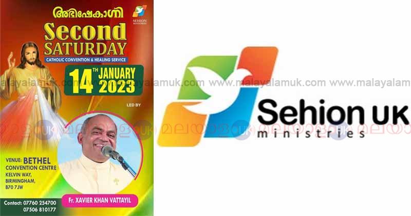 2023 ലെ ആദ്യ രണ്ടാം ശനിയാഴ്ച്ച കൺവെൻഷൻ ബർമിങ്ഹാം ബെഥേൽ കൺവെൻഷൻ സെന്ററിൽ അഭിഷേകാഗ്നി രണ്ടാം ശനിയാഴ്ച്ച കൺവെൻഷൻ എന്ന പേരിൽ ലോക പ്രശസ്ത വചന പ്രഘോഷകനും, ക്രൈസ്തവ ശാക്തീകരണത്തിന്റെ പടയാളിയും , സെഹിയോൻ ,അഭിഷേകാഗ്നി മിനിസ്ട്രി, പ്രീച്ചേഴ്സ് ഓഫ് ഡിവൈൻ മേഴ്സി , അഭിഷേകാഗ്നി സിസ്റ്റേഴ്സ് സന്യാസ പൗരസ്ത്യ സഭ എന്നിവയുടെയും സ്ഥാപകനുമായ റവ.ഫാ. സേവ്യർ ഖാൻ വട്ടായിലിന്റെ നേതൃത്വത്തിൽ നാളെ നടക്കും. 2009 ൽ ഫാ. സോജി ഓലിക്കൽ തുടക്കമിട്ട സെഹിയോൻ യുകെ രണ്ടാം ശനിയാഴ്ച്ച കൺവെൻഷൻ 2023 മുതൽ അഭിഷേകാഗ്നി എന്ന പേരിലായിരിക്കും പതിവുപോലെ എല്ലാ രണ്ടാം ശനിയാഴ്ച്ചകളിലും നടത്തപ്പെടുക.