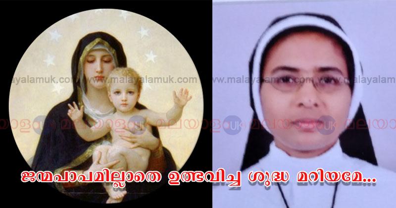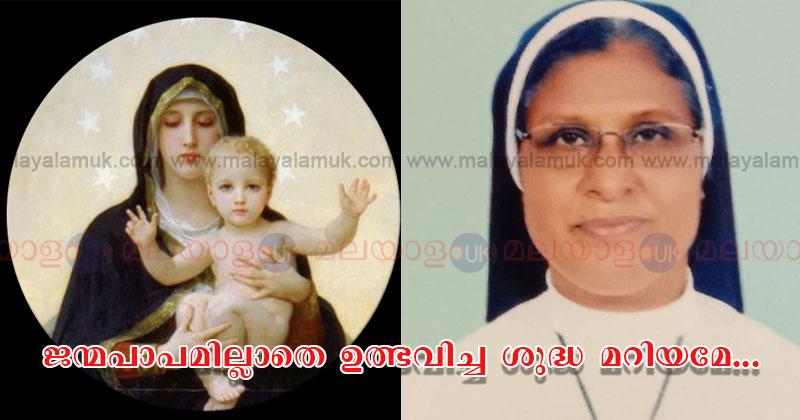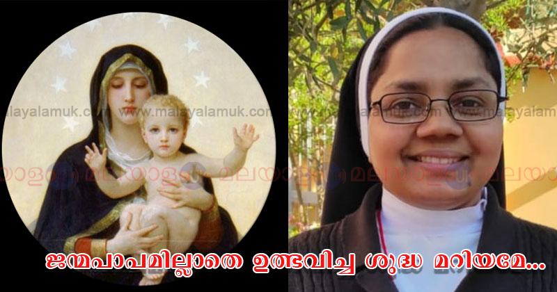 ഒമ്പതാം പീയൂസ് മാർപ്പാപ്പയാണ് 1854 ൽ പരി. കന്യകയുടെ അമലോത്ഭവം വിശ്വാസ സത്യമായി പ്രഖ്യാപിച്ചത്. പരി. കന്യകയുടെ അമലോത്ഭവത്തെ അനുസ്മരിക്കുമ്പോൾ എൻ്റെ ജീവിതാനുഭവത്തിൽ ഒത്തിരിയേറെ നന്ദി നിറഞ്ഞ ഹൃദയമാണ് ഉണ്ടാകുക. കാരണം ഒരു സമർപ്പിത എന്ന നിലയിൽ പാപത്തിൻ്റെ ഒരു കറ പോലും ഏശാതെ കാത്ത് സംരക്ഷിച്ചവളാണ് പരിശുദ്ധ അമ്മ.