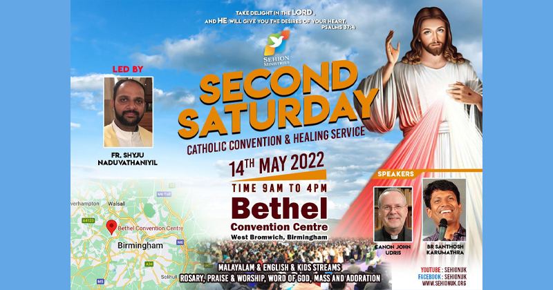 മഹാമാരിക്ക്ശേഷം സെഹിയോൻ യുകെ രണ്ടാം ശനിയാഴ്ച്ച കൺവെൻഷൻ പുനഃരാരംഭിക്കുന്നു.മെയ് മാസ കൺവെൻഷൻ 14 ന് ബെഥേലിൽ . ഫാ.ഷൈജു നടുവത്താനിയും ബ്രദർ സന്തോഷ് കരുമത്രയും നയിക്കും .