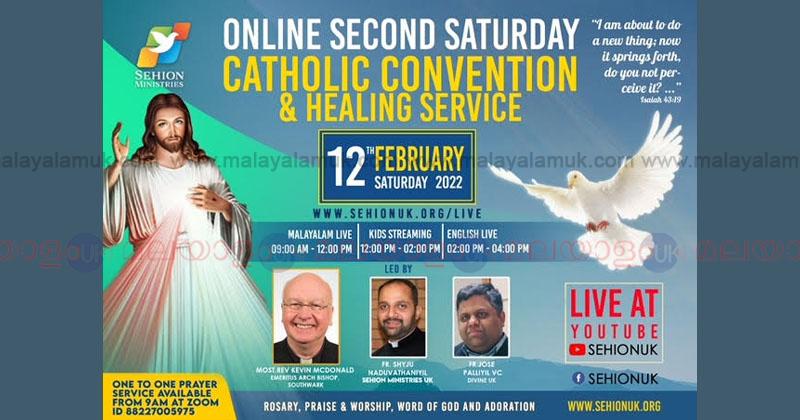 നവസുവിശേഷവത്ക്കരണത്തിന് പരിശുദ്ധാത്മ പ്രേരണയിൽ സെഹിയോൻ യുകെയുടെ നേതൃത്വത്തിൽ നടക്കുന്ന പ്രതിമാസ രണ്ടാം ശനിയാഴ്ച്ച കൺവെൻഷൻ നാളെ നടക്കും .കോവിഡ് , ഒമിക്രോൺ ഭയാശങ്കകളിൽ ഇത്തവണയും കൺവെൻഷൻ ഓൺലൈനിലാണ് നടക്കുക. .റവ.ഫാ.ഷൈജു നടുവത്താനിയിൽ കൺവെൻഷൻ നയിക്കും.